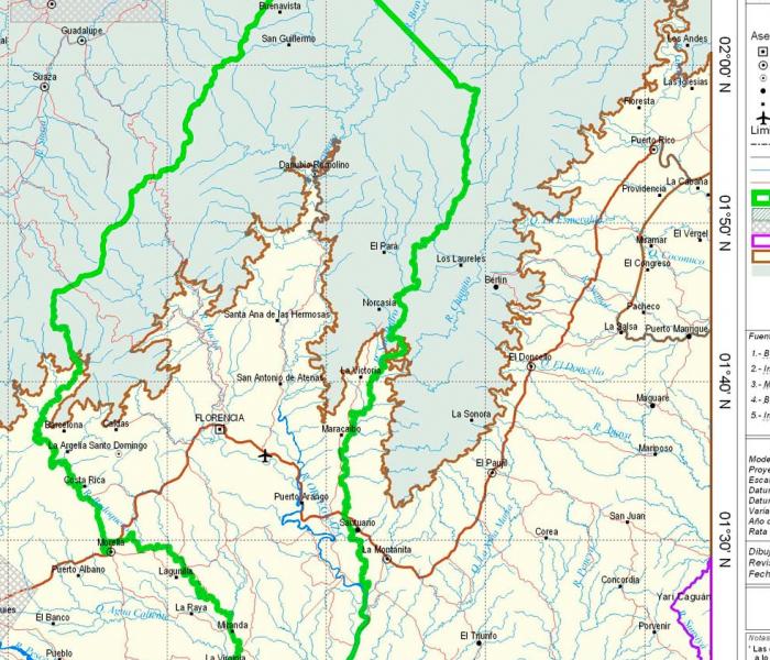 • West: Municipalities of Belen de los Andaquies and Department of Huila.