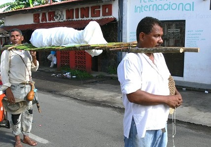 Dicen los caminantes de Belén de los Andaquies que cerca a la plaza de mercado en las noches se ve un cortejo fúnebre llevando un muerto.